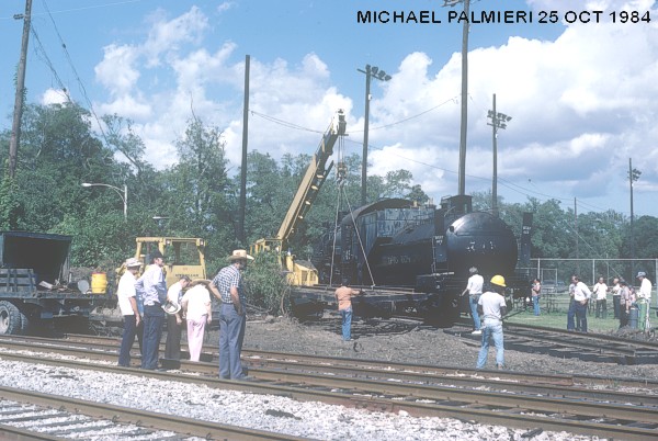 The Audubon Park Board chose to place the fate of SP 745 in local hands and transferred ownership to OKRA. From that point on, OKRA members worked within the fenced-in, close confines to get the locomotive ready for a trip on her own wheels for the first time in nearly thirty years. Rods were removed from the wheels and chained down to the top of the Vandy tender as all preparations were made for the big day!